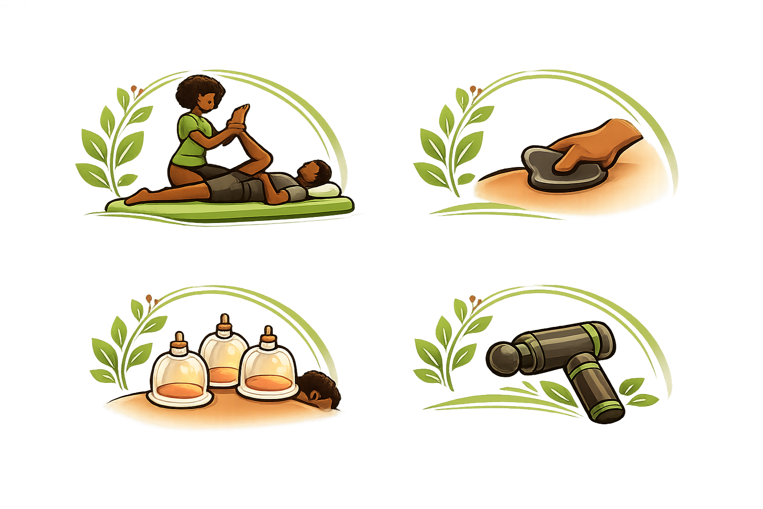 A therapeutic recovery technique designed to relieve muscle tension, improve circulation, and support the body's natural healing process. Using specialized cups, gentle suction is applied to targeted areas of the body to lift tissue, rather than compress it like traditional massage.